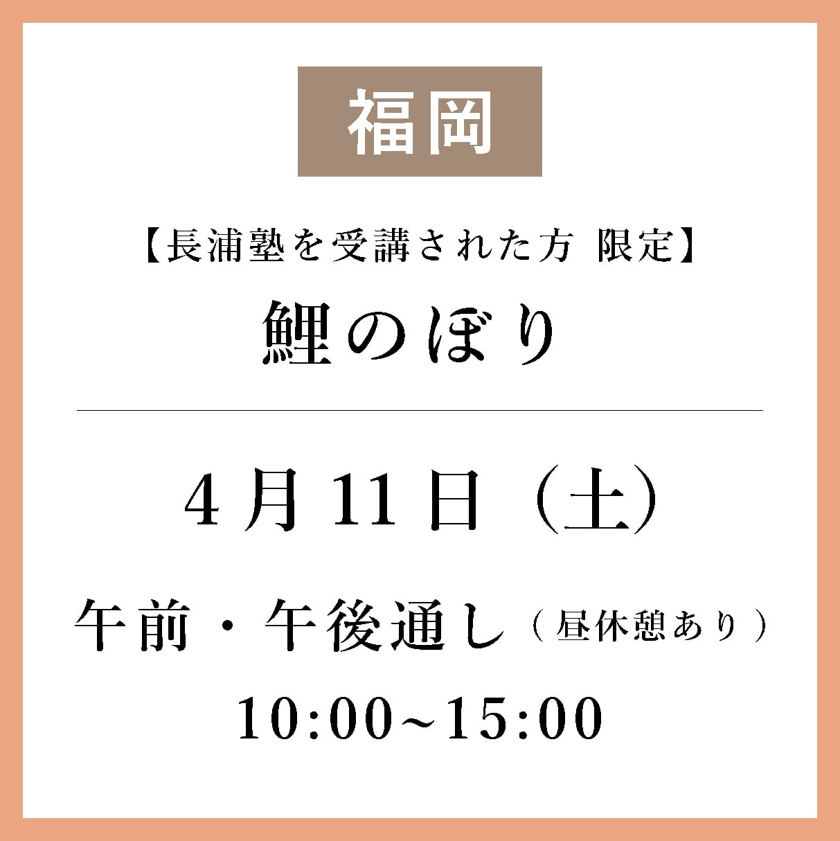 ※福岡:午前~午後通し講座(10:00~15:00 *昼休憩あり)