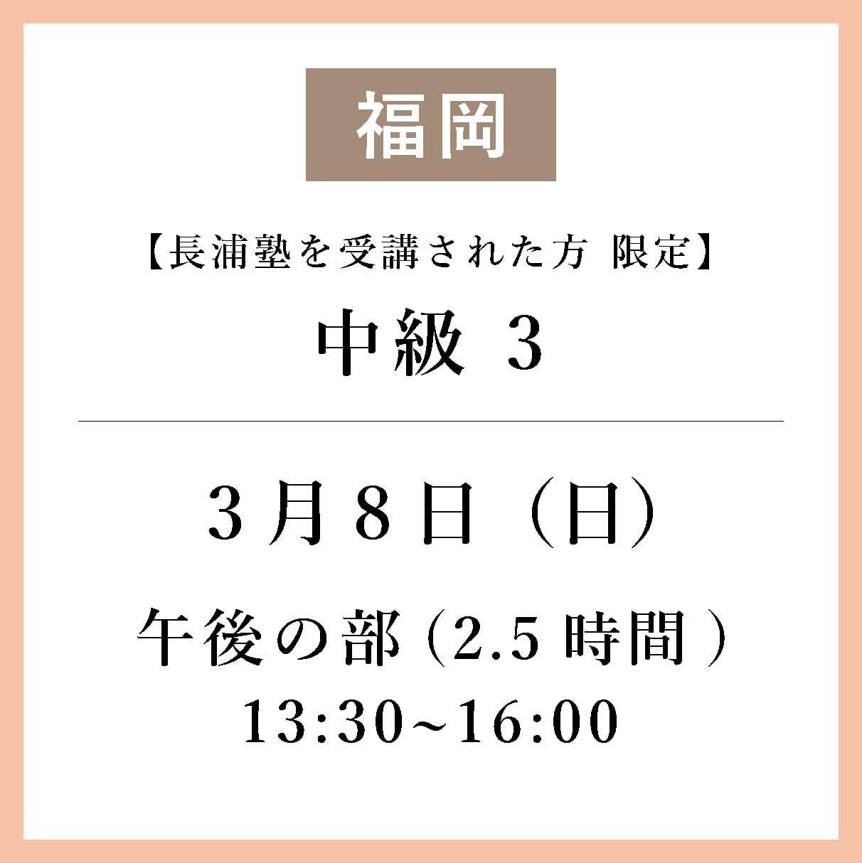 <福岡>3月8日(日)pm/午後の部 13:30~16:00_中級3
