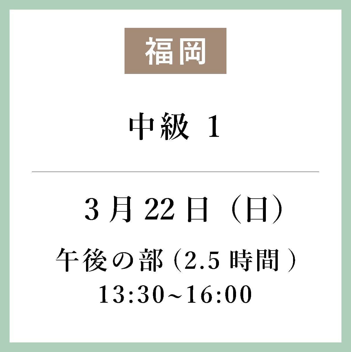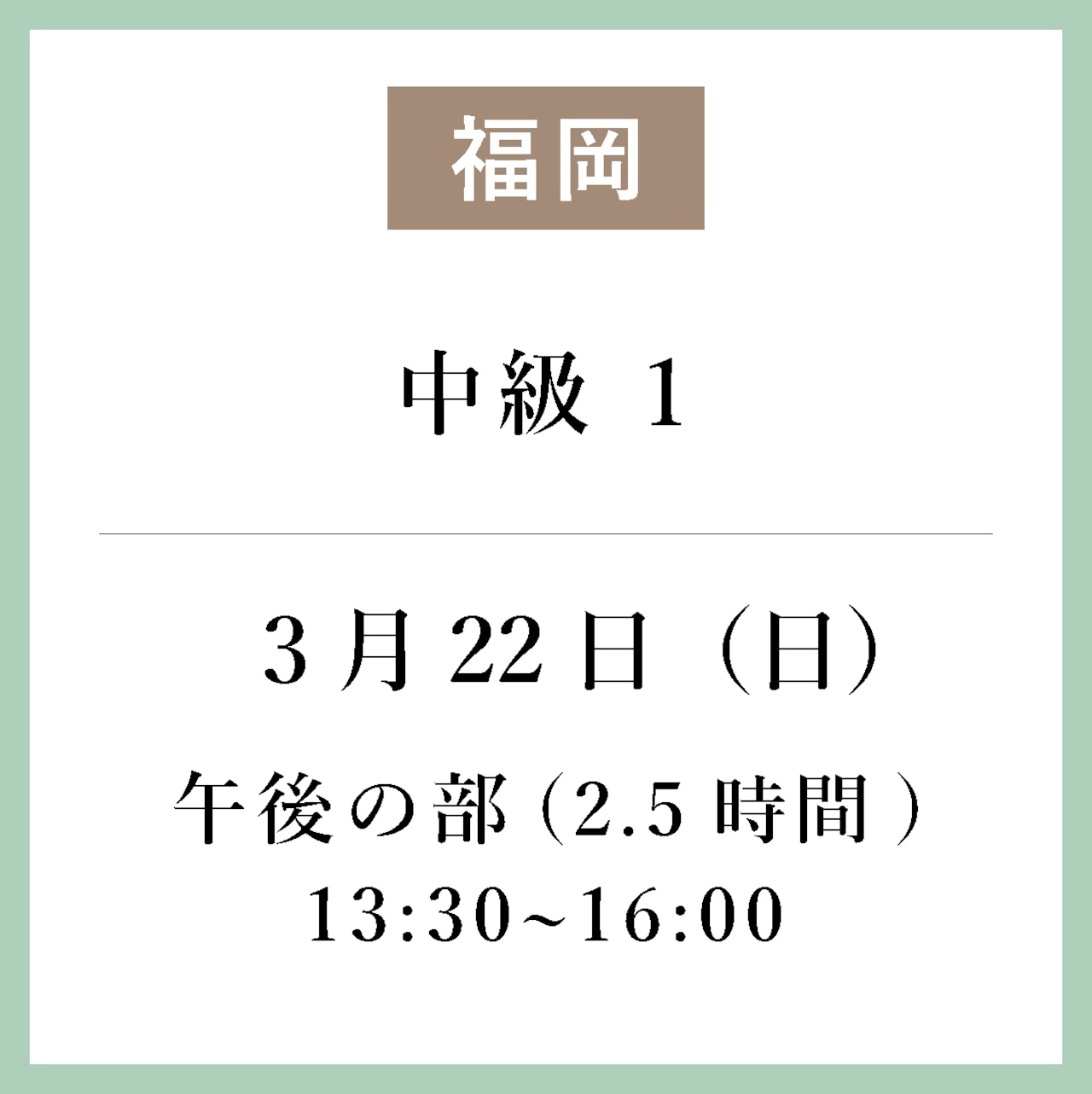 <福岡>3月22日(日)pm/午後の部 13:30~16:00_中級1